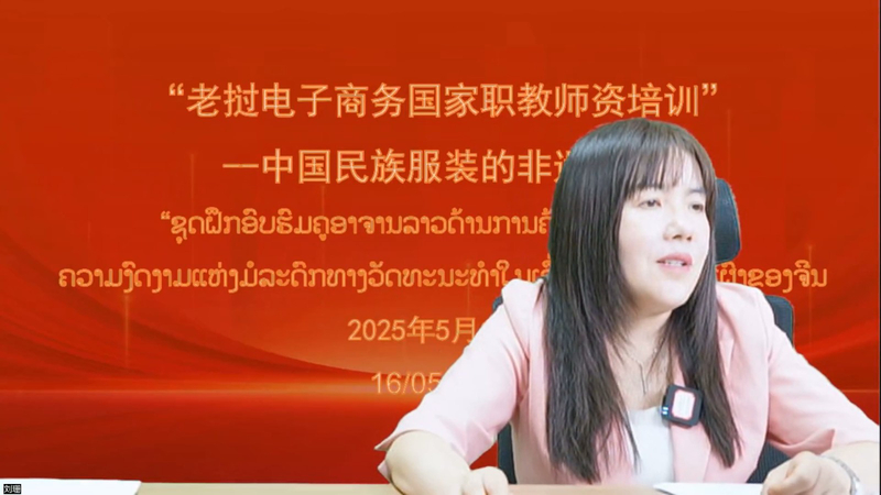 大国外交,教育先行,为服务“一带一路”教育合作,在长沙民政职业技术学院的牵头组织下,湖南民族职业学院于5月16日举办“老挝电子商务国家职业教育师资培训”线上培训。本次活动以“非遗出海”,讲好中国故事为主题,聚焦《霓裳羽衣:中国民族服装的非遗风采》主题,面向老挝25名职业教育教师直播授课,课程由湖南民族职业学院教授、副校长邹欣欣,湖南民族职业学院视觉艺术学院方细娟、晁英娜老师共同授课。